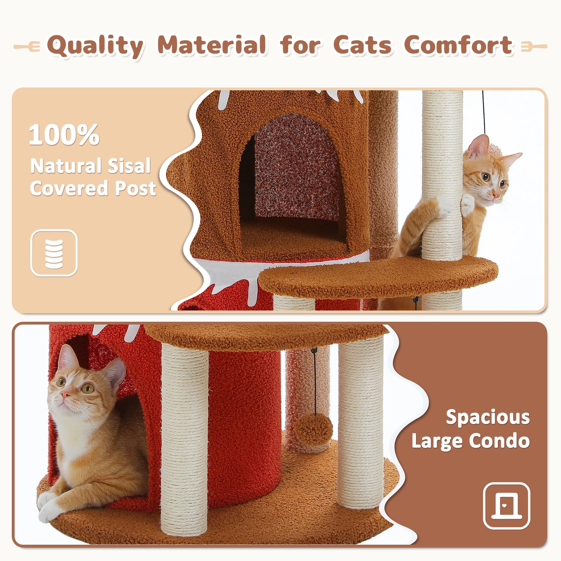 •Cute Multi-Tier Cake Design: This adorable cake-shaped cat house features a 5-level design with spiral platforms, which meets cats' climbing instincts and serves as cute decor in your room. A chocolate cake cat tree or a strawberry vanilla cake cat tower will be a favored birthday gift for your feline friends.