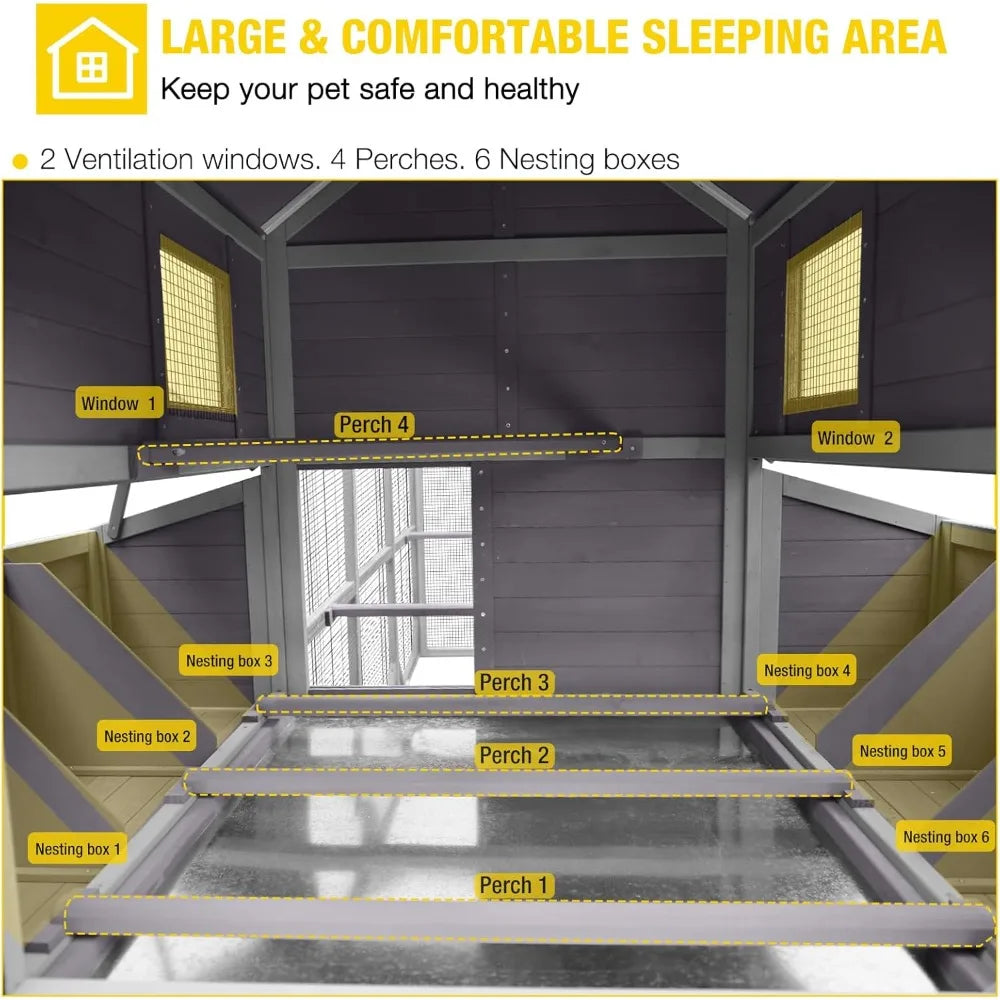Chicken Coop Extra Large Chicken House 41.3ft² for 8-10 Chickens Outdoor Wooden Hen House Poultry Cage with 6 Nesting Boxes, 6