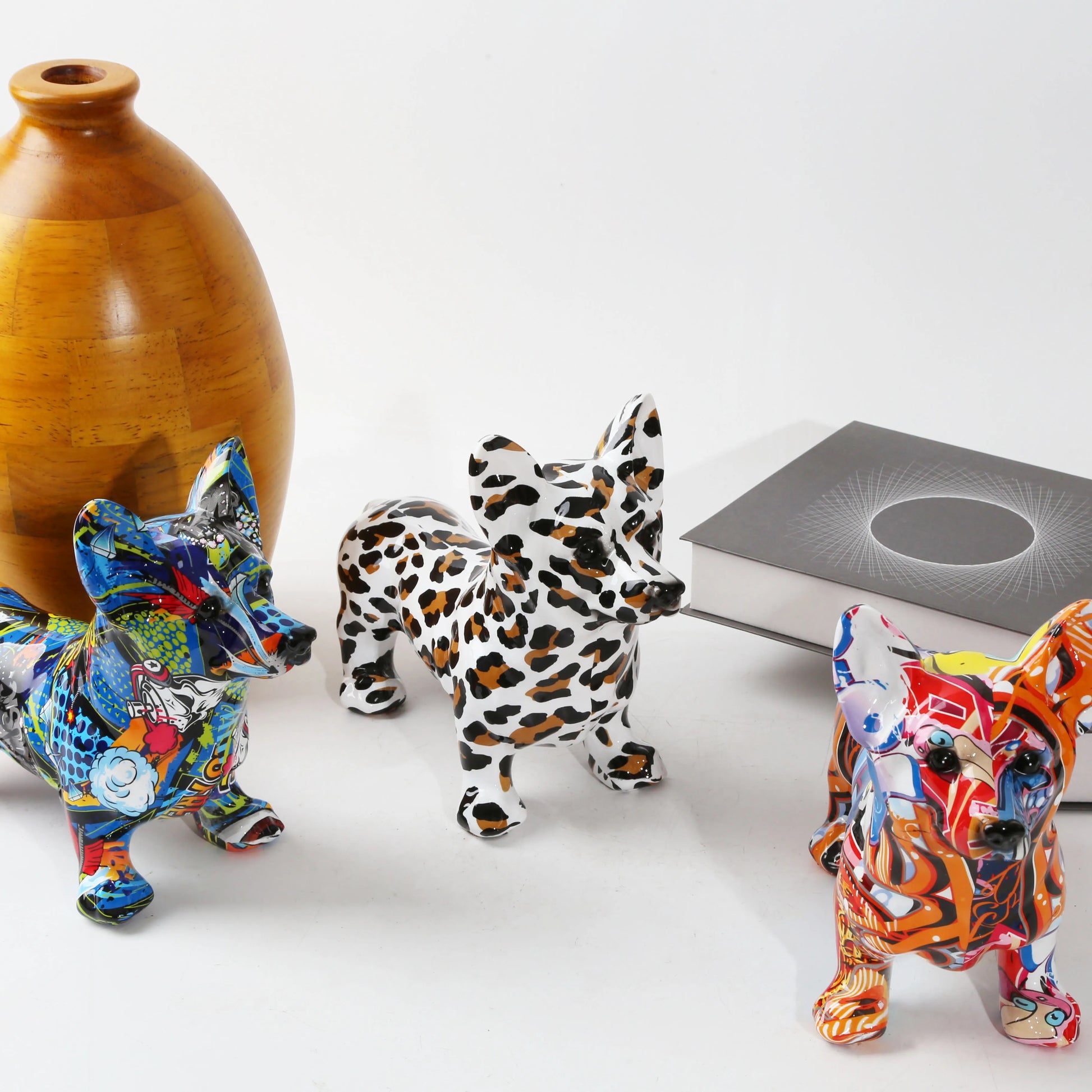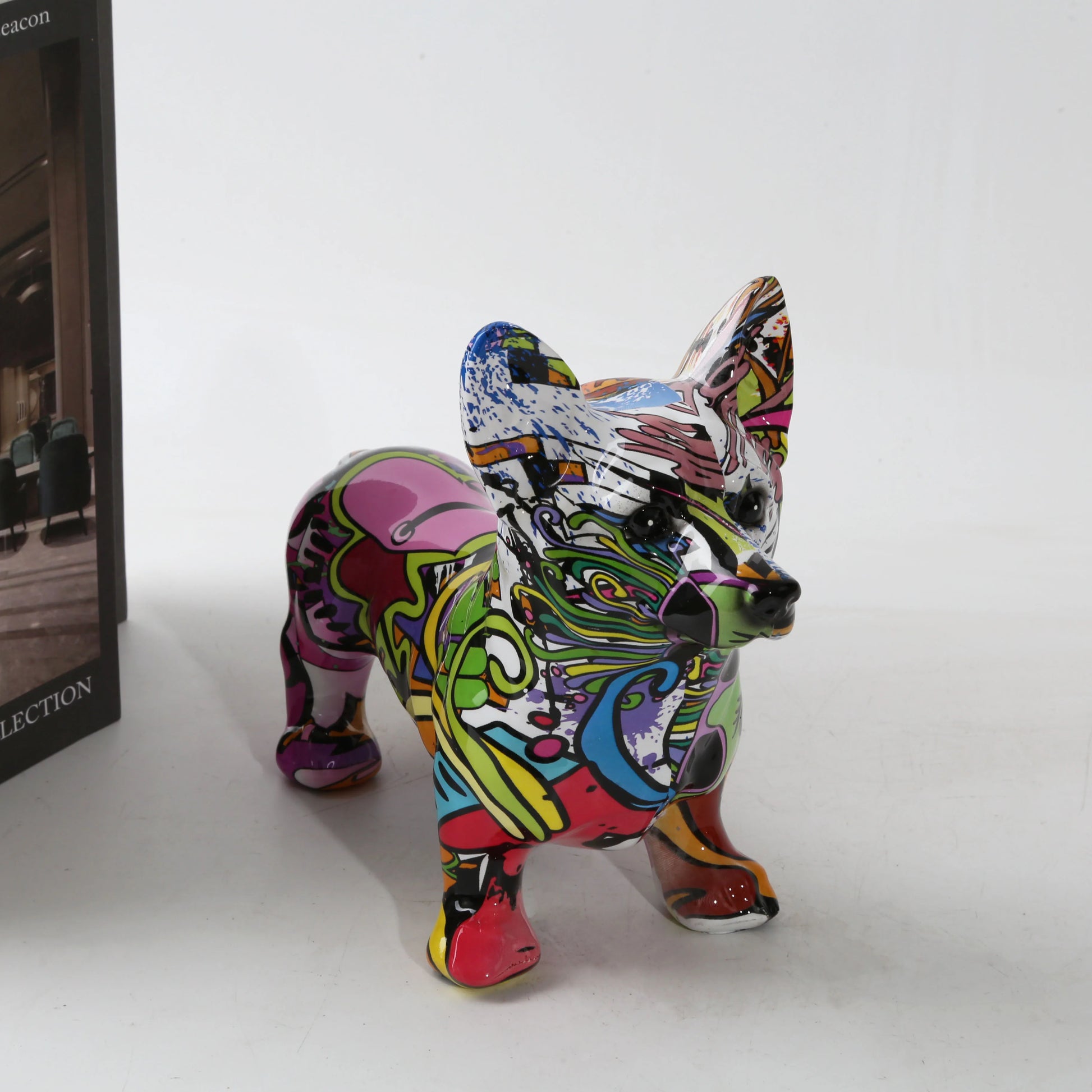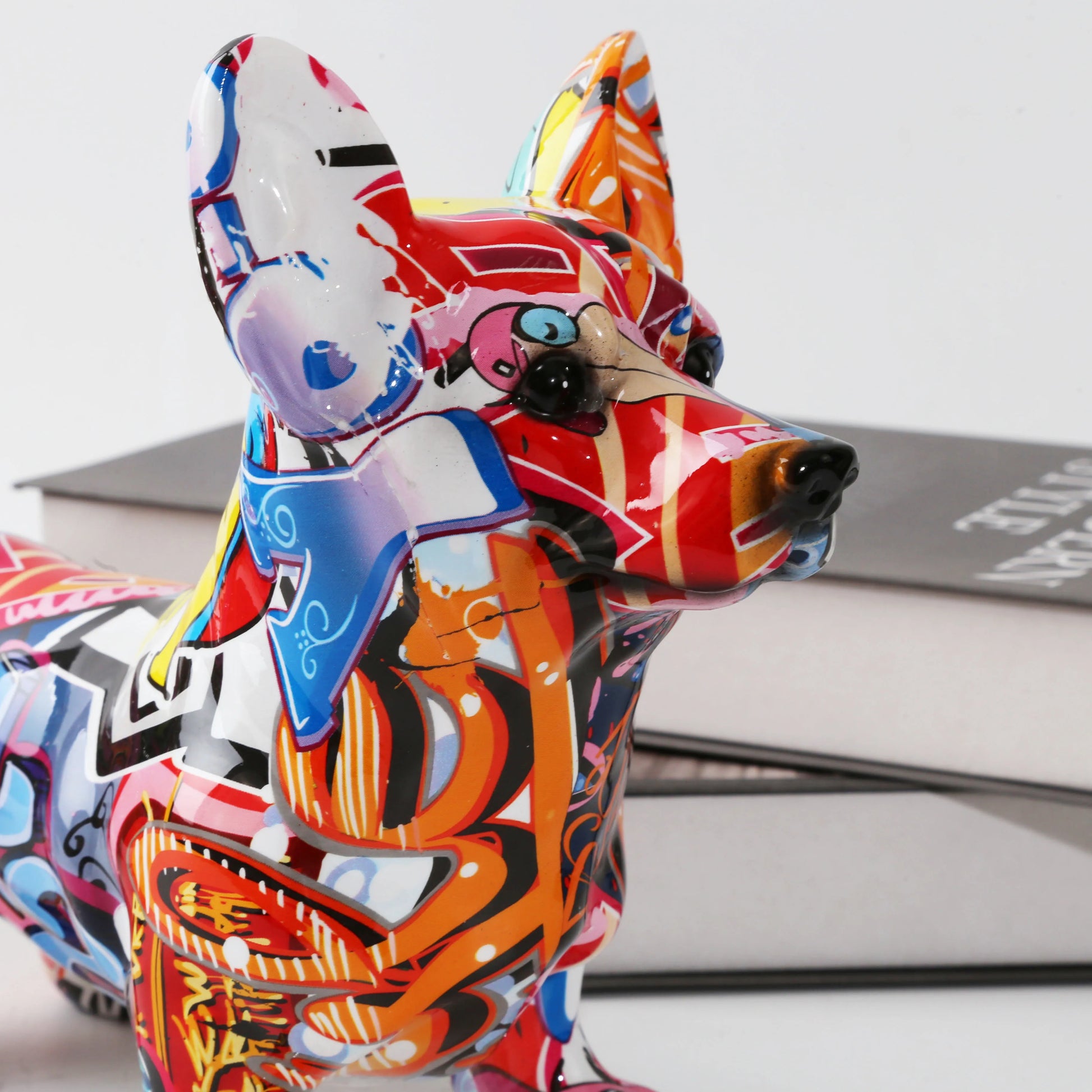 Nordic Art Graffiti Corgi Dog Painting Creative Resin Crafts Home Decoration Wine Cabinet Office Decor Crafts Gift Ornaments