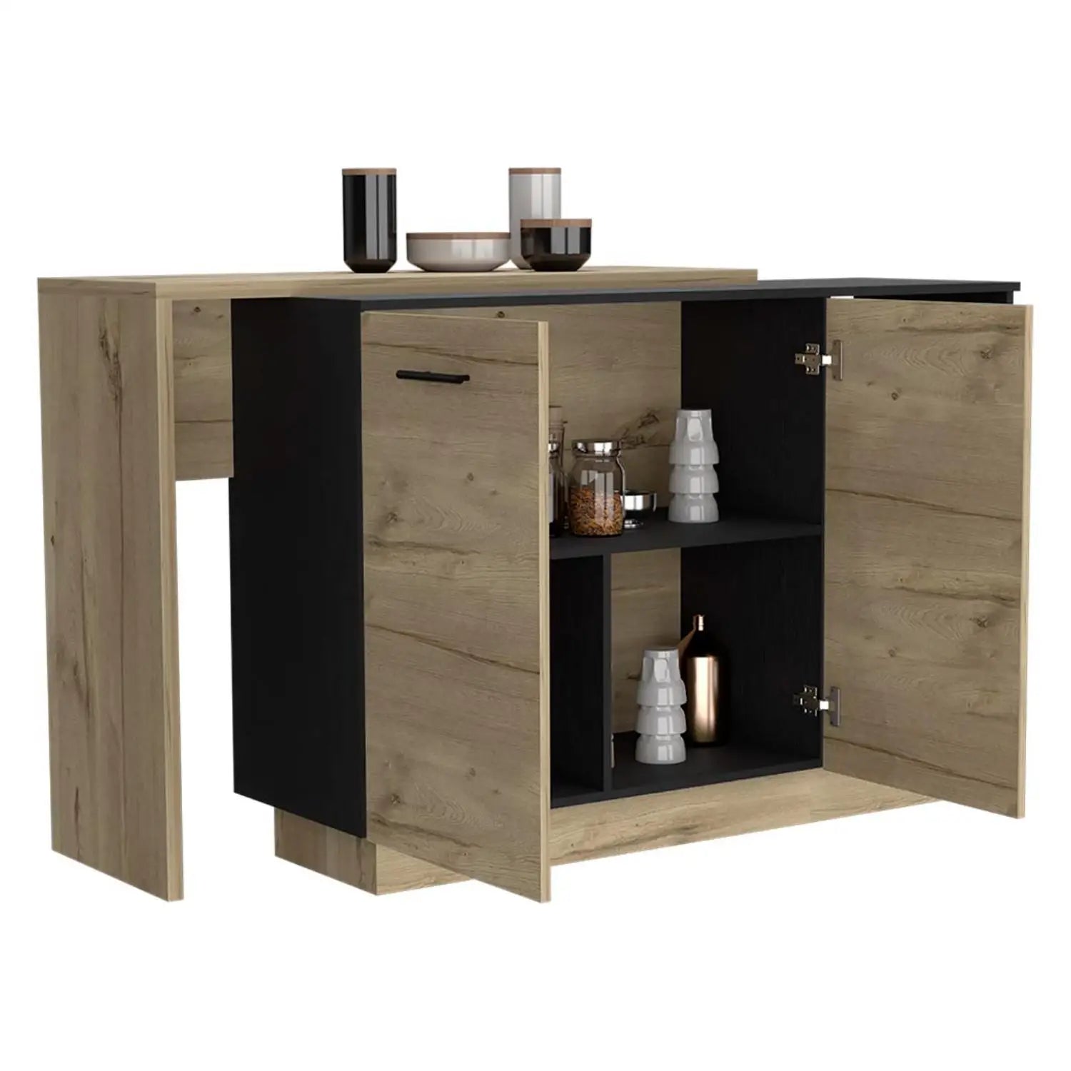 The Tuhome Sicilia Kitchen island is a must-have in your kitchen. Described as the perfect mix of functionality, elegance, and superb design. With a two-level countertop, this product has a lot of features for your convenience. One side features two cabinets that will provide you with a ton of storage space with its three interior shelves for larger items (each shelf is 14.3 Inch High x 15 Inch Deep ) and two exterior shelves to display your decorative or frequently usable items. On the other side, you will have plenty of legroom to sit on the kitchen island and enjoy dinner while sitting on a stool.