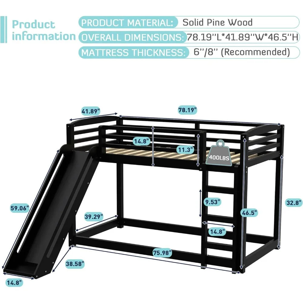 - 【Fun Slide & Ladder for Endless Play】Turn bedtime into playtime! Our kids bunk bed features an exciting slide and sturdy ladder-perfect for climbing adventures. The slide and ladder can switch sides to fit any room layout, helping kids build balance while having a blast.